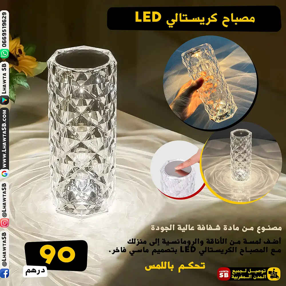أضف لمسة من الأناقة والرومانسية إلى منزلك مع المصباح الكريستالي LED بتصميم ماسي فاخر.