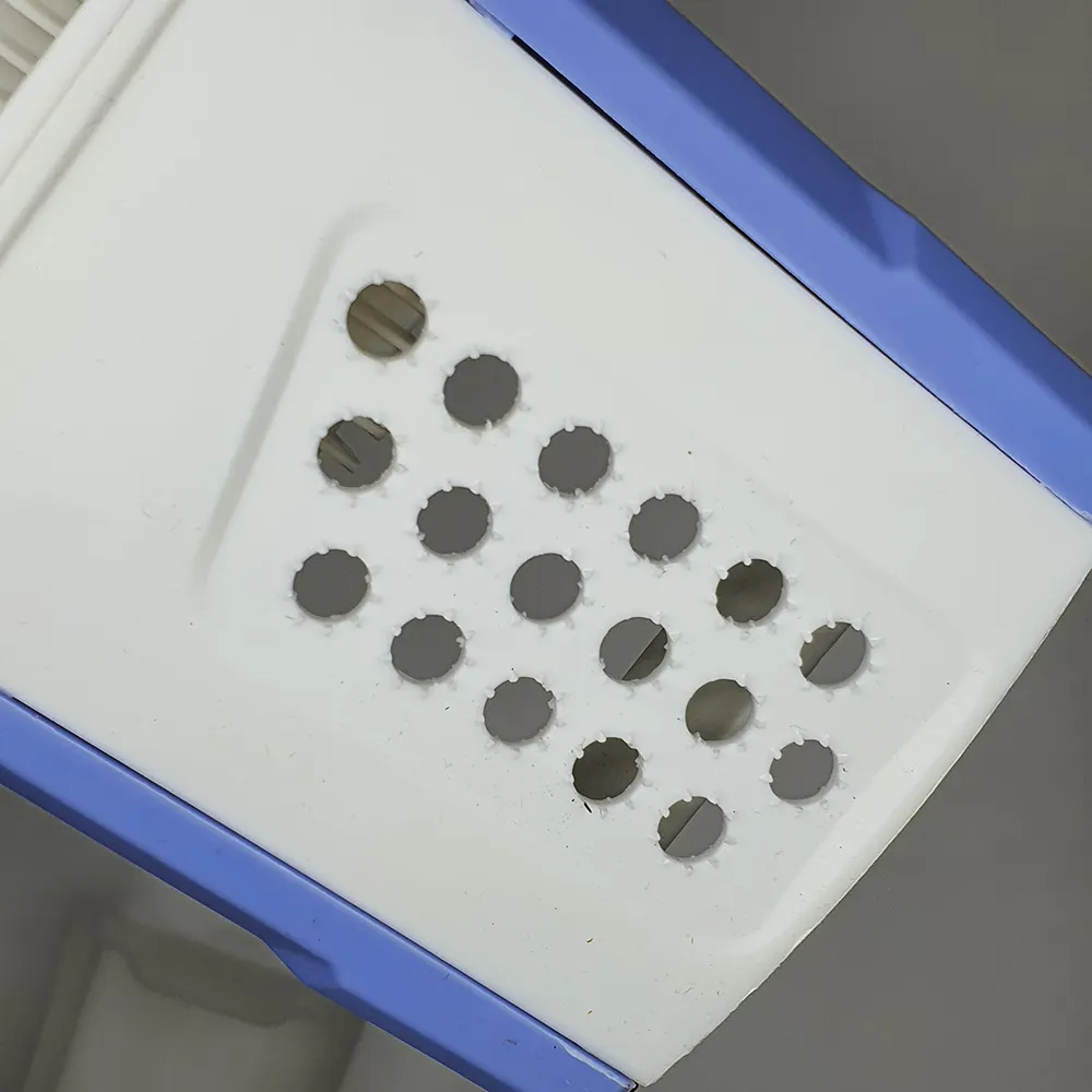 3. 🧺 سهلة التنظيف والتخزين: تصميم مدمج قابل للطي لتوفير المساحة، وفرشاة مدمجة لمنع تراكم الأطعمة على الشفرات، بالإضافة إلى حاوية لتجميع الخضروات تحافظ على نظافة المطبخ.