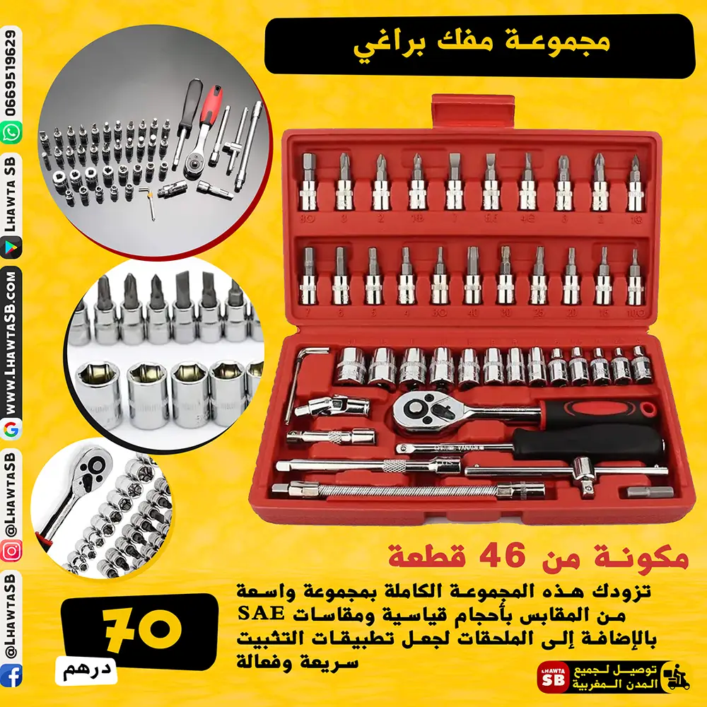 🧰 عدة إصلاح السيارات المتكاملة 46 قطعة – القوة والعملية في مجموعة واحدة