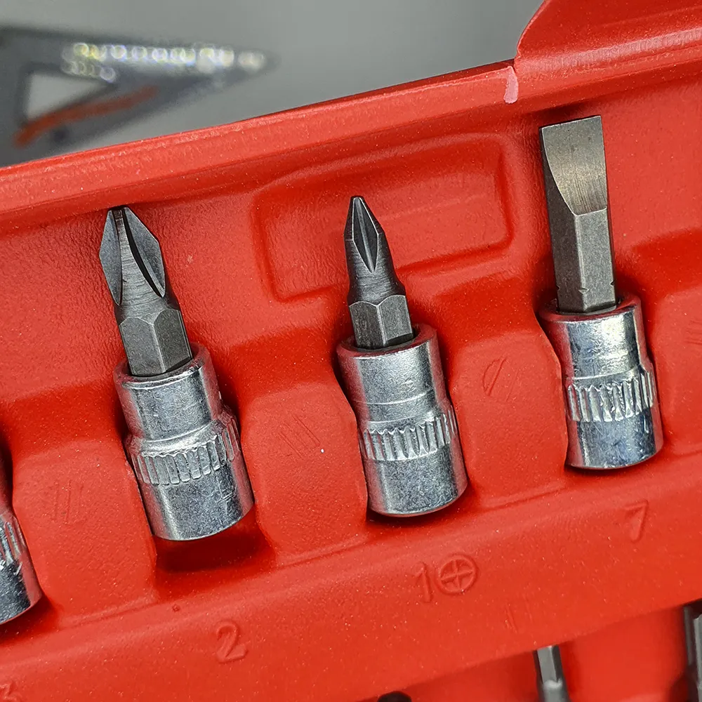 • 🔹 21 قطعة رؤوس بتات: SL4, 5.5, 7, PH1, 2, 3, PZ1, 2, 3, HEX3, 4.5, 6, 7, 8, T10, 15, 20, 25, 30, 40