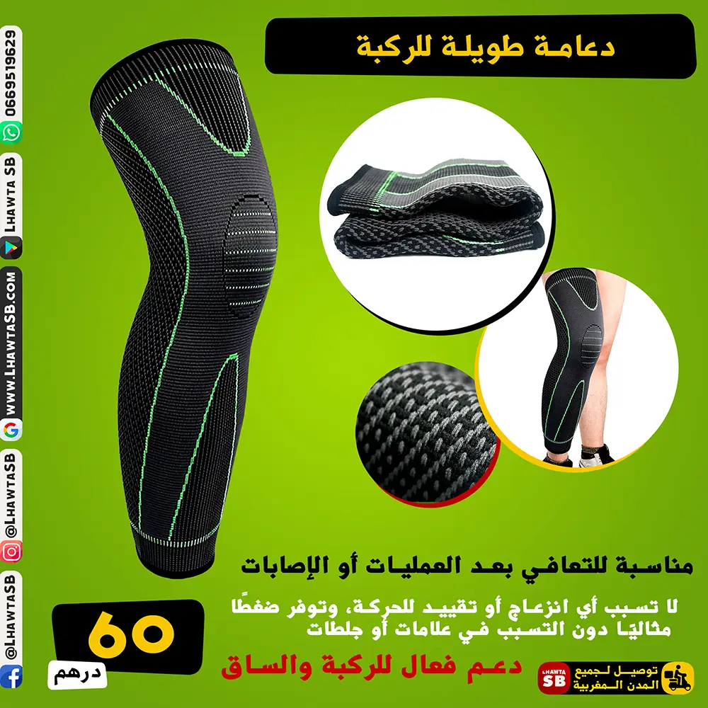 دعامة طويلة للركبة لتخفيف آلام المفاصل والدوالي والتورم | مناسب للرياضة واللياقة