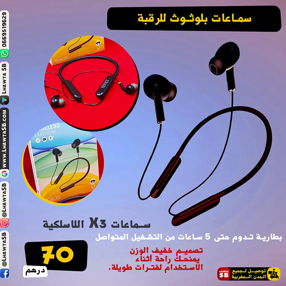 🖤 سماعات X3 اللاسلكية – تصميم أنيق، أداء قوي، وصوت عالي الجودة أينما كنت.
