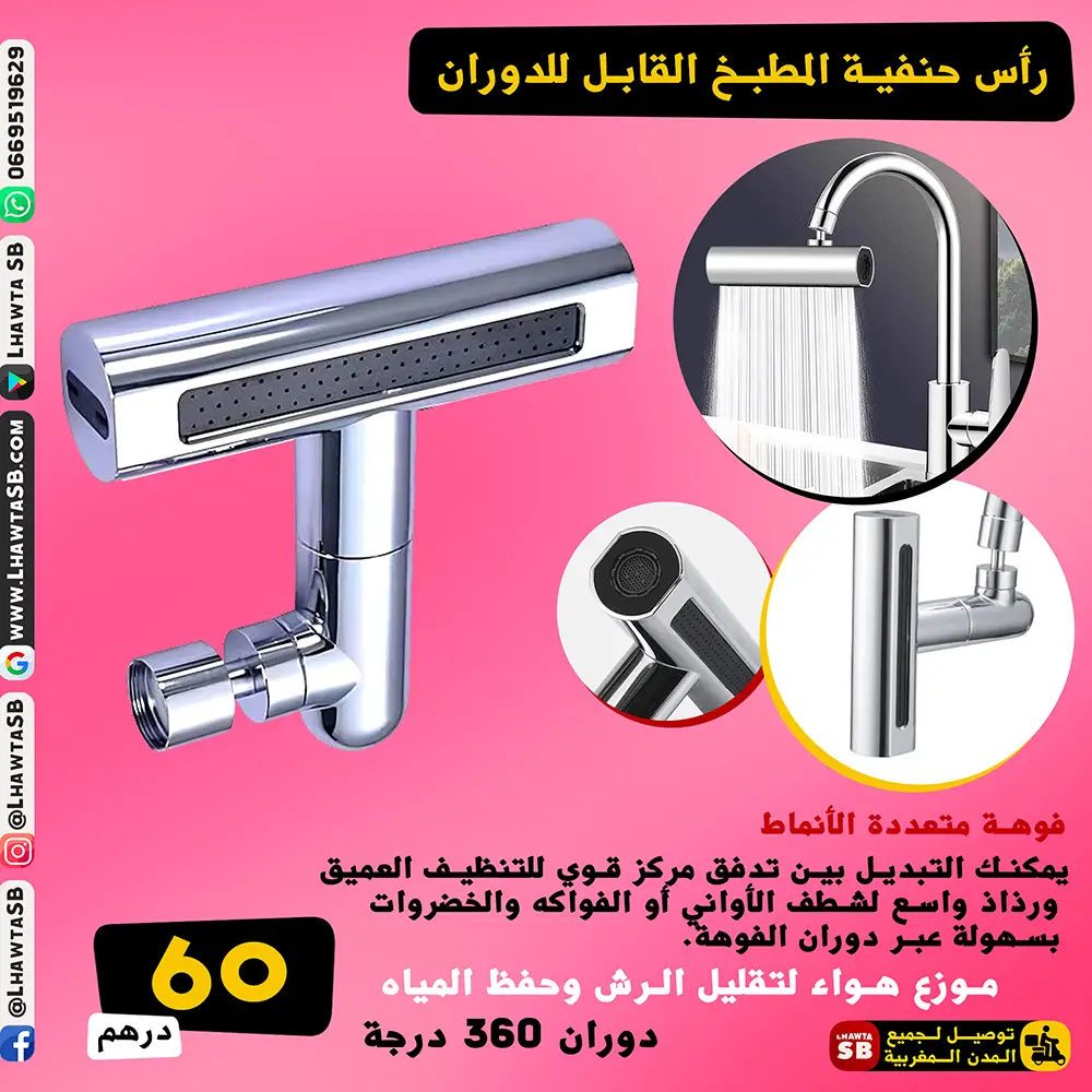يعمل رأس الحنفية على تصفية المياه من الشوائب، مما يجعله مناسبًا للاستخدام اليومي في تنظيف الطعام، وغسل الأواني، وتنظيف الزوايا المخفية من الحوض. -