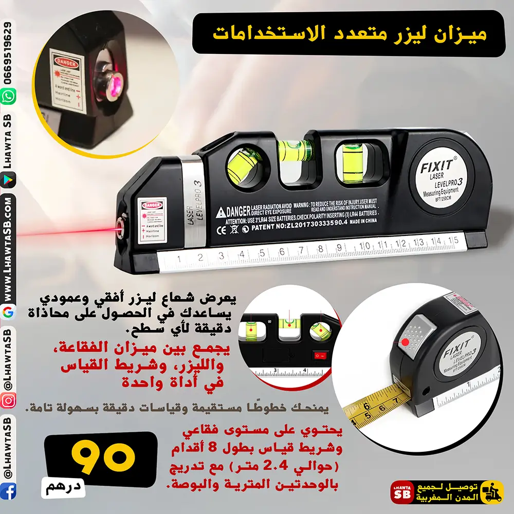 💡 وفر الوقت واحصل على نتائج احترافية مع ميزان الليزر المتعدد الوظائف – الأداة المثالية لكل من يبحث عن الدقة والسرعة في القياس والتثبيت.