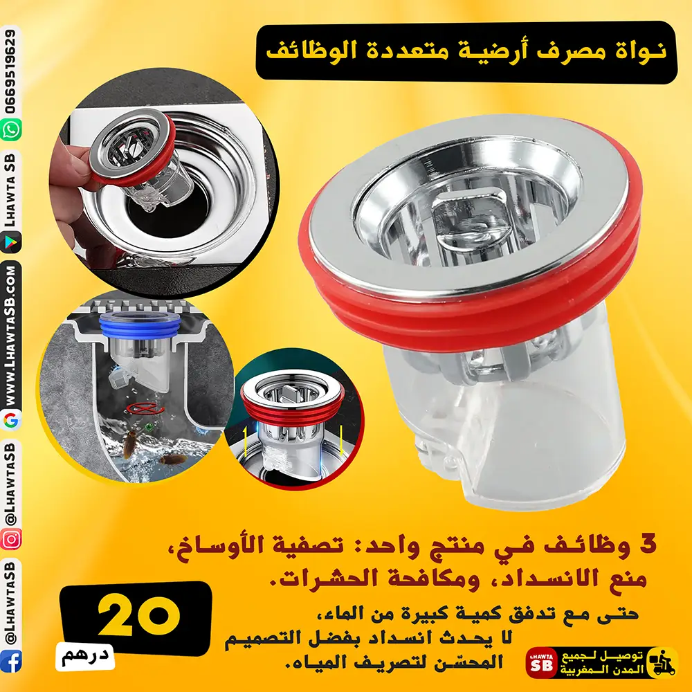 نواة الصرف الأرضي هذه مصنوعة من مواد عالية الجودة، وتجمع بين التصفية، ومنع الروائح، ومكافحة الحشرات في منتج واحد بسيط وسهل التركيب، مناسب للحمام، المطبخ، حوض الغسيل أو غرفة الاستحمام.