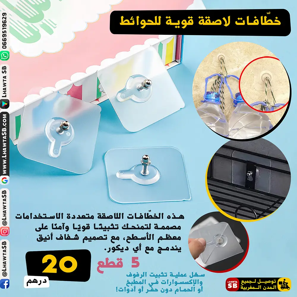 هذه الخطّافات اللاصقة متعددة الاستخدامات مصممة لتمنحك تثبيتًا قويًا وآمنًا على معظم الأسطح، مع تصميم شفاف أنيق يندمج مع أي ديكور.