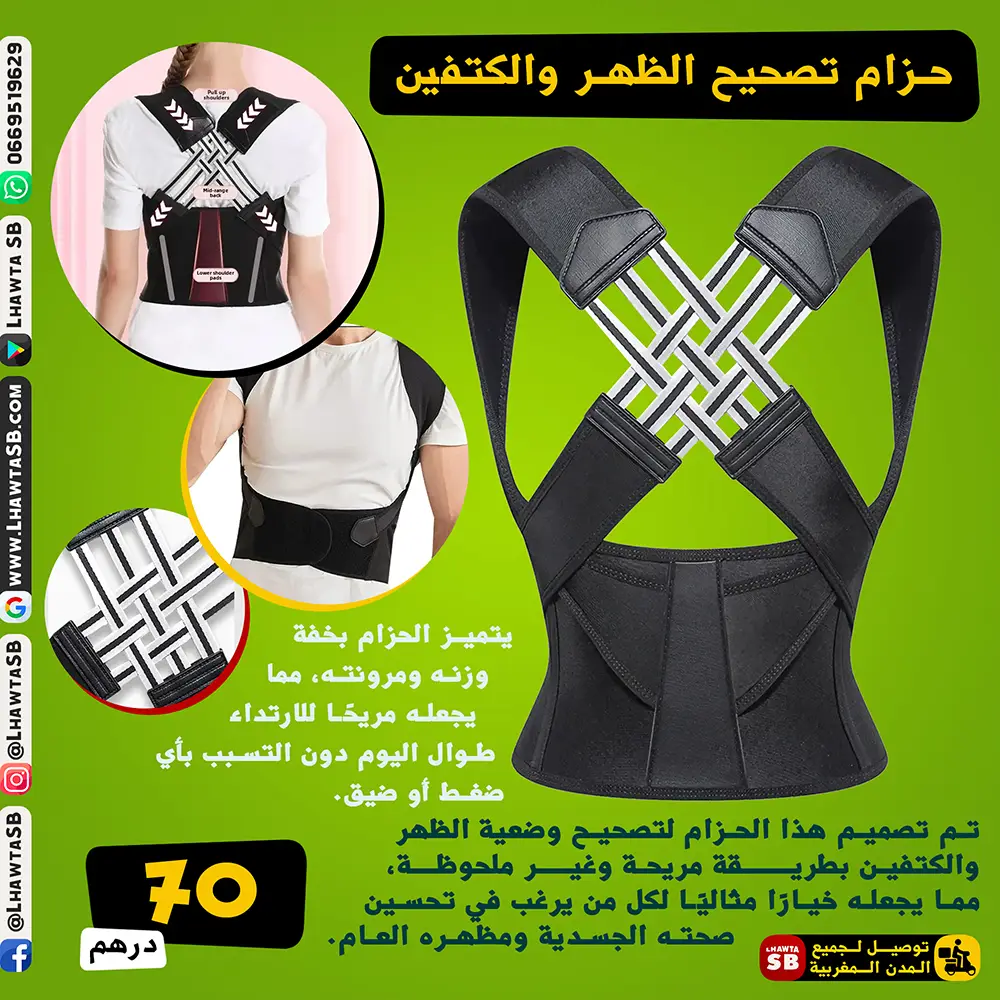 تم تصميم هذا الحزام لتصحيح وضعية الظهر والكتفين بطريقة مريحة وغير ملحوظة، مما يجعله خيارًا مثاليًا لكل من يرغب في تحسين صحته الجسدية ومظهره العام.